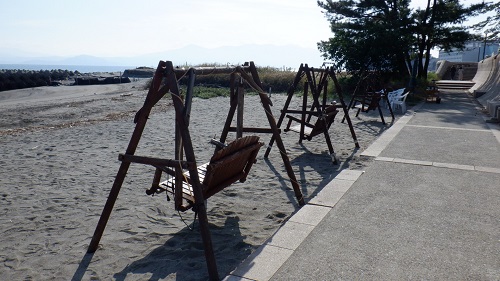 波風に吹かれ、コーヒーを片手にブランコで海と湯けむりを眺める。