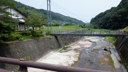 駐車場から【畑冷泉館】までは、細い吊り橋を渡ります。