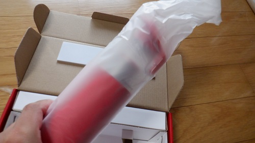 厳重すぎるくらいきちんと梱包された段ボールの中に、ハンディ掃除機の箱が履いていました。